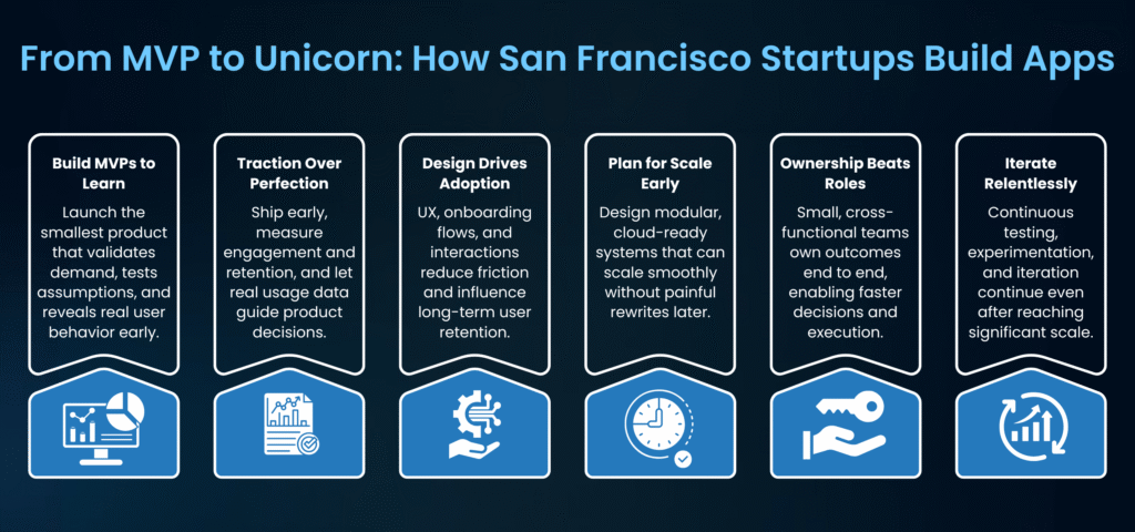 San Francisco startups treat apps as living systems, not finished products. Launching an MVP is not the end goal it’s the beginning of a continuous feedback loop powered by users, data, and rapid experimentation.